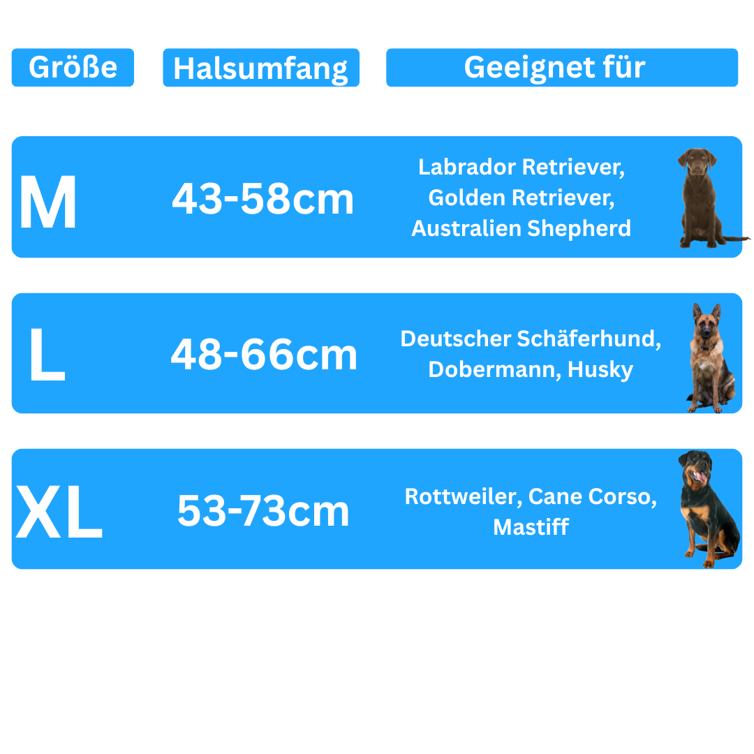 Viele Halsbänder reißen, scheuern oder lösen sich im falschen Moment. Das kann zu Verletzungen, Kontrollverlust oder Angst führen – für Hund und Mensch.